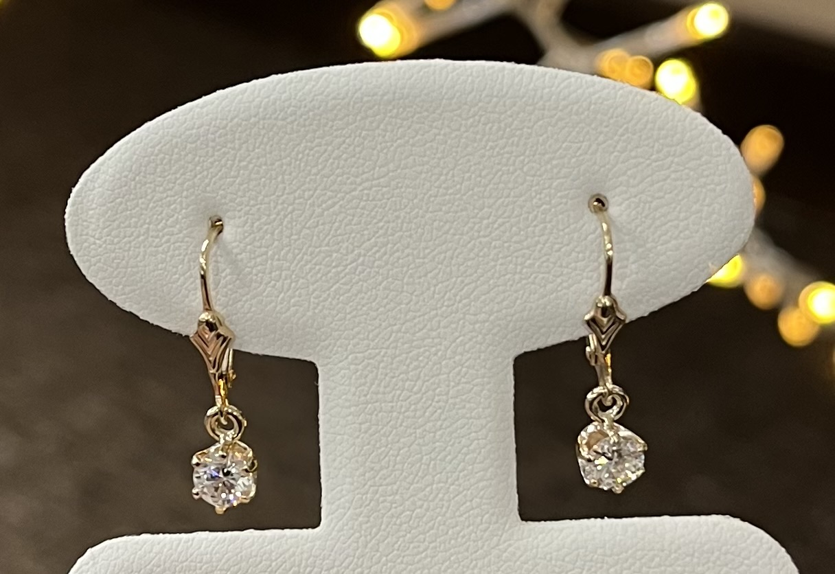 Be the first to review “14k Yellow Gold Fleur-de-lis Dangle Diamond Earrings #3834”