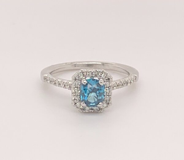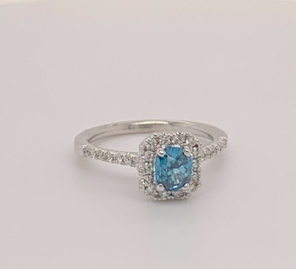 Mounting is set with 0.35cttw white diamonds (halo & shank)